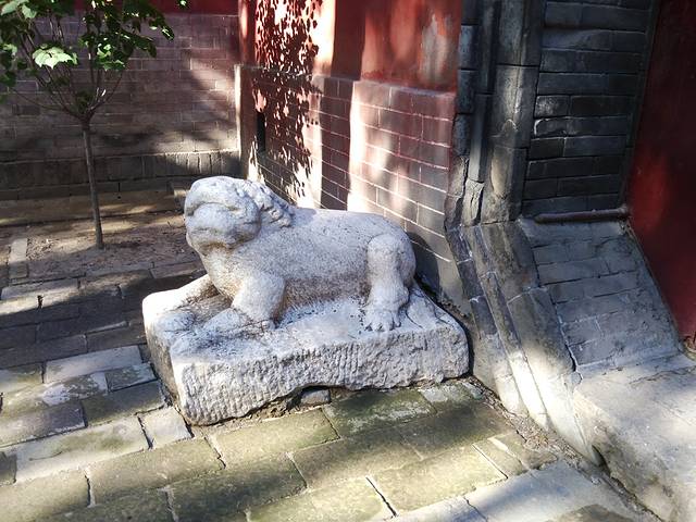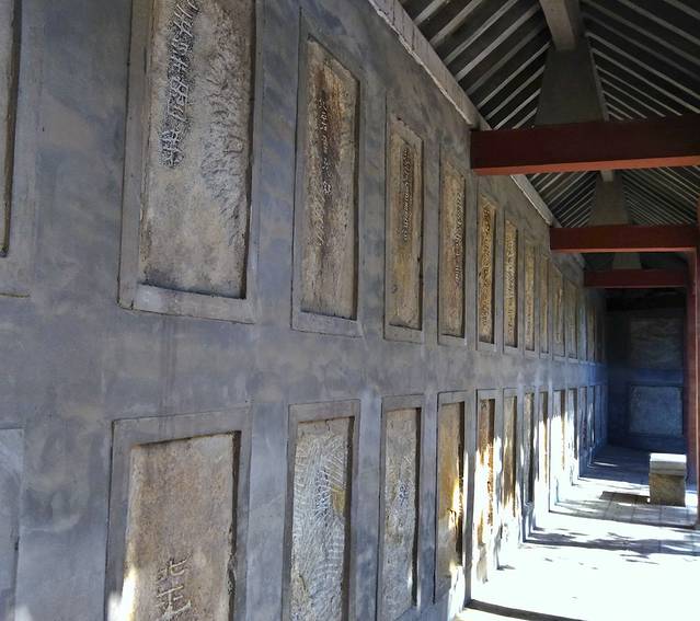 一进门就见到乾隆御笔“龙飞”二字镶嵌在东碑廊的墙上,院子里有非常珍贵经幢、石碑,和乾隆、嘉庆皇帝的御制诗碑等,价值连城。