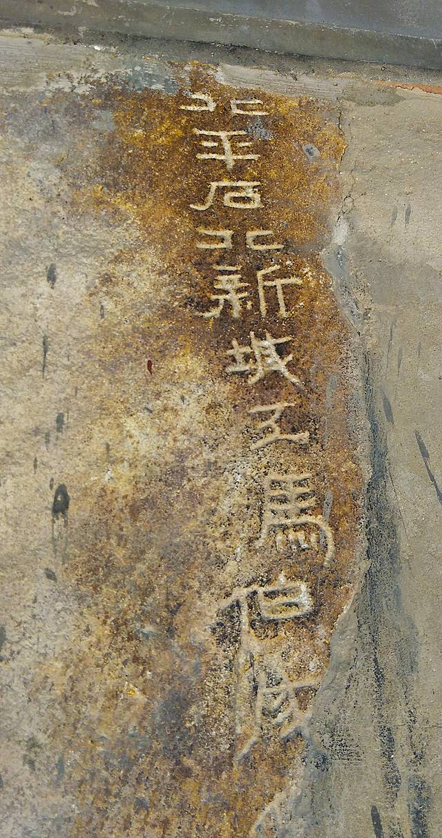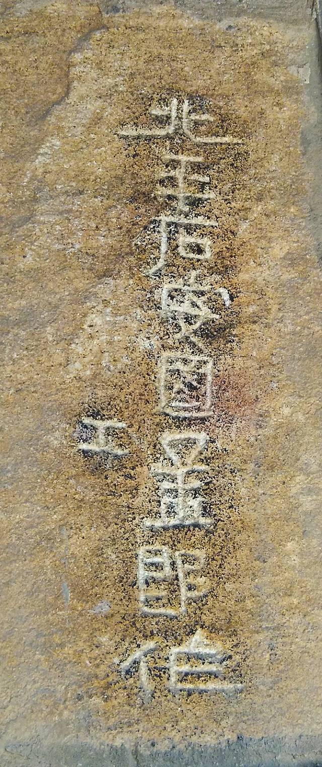 院子中间是西汉第八代中山王刘兴的墓,院子一圈的墙上全是汉墓石刻。先对北庄子石刻很感兴趣,慢慢欣赏起来。大多是人名、地名,而且全部是隶书字体。这时才又了解到汉朝的文字是从篆书向隶书演变的过程。找清晰的拍照,后发现小手册上有一个石刻照片最为清晰,便兴志勃勃地找去,半天终于被我找到了!