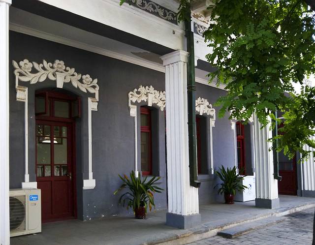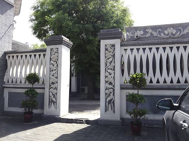 小巧而精致的建筑太让我喜欢了,那门前洁白大理石的欧式雕塑精美可爱,灰色门楣上的白色浮雕图案精典,西式风格浓郁。院子的墙壁、过门等处均有这样的浮雕,整个小院设计感十足。