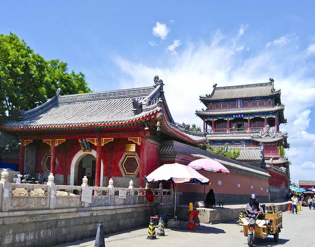 穿过市场就到了关岳行宫。这里是国内唯一一座同时供奉关羽和岳飞的庙宇。始建于元太宗十三年,经明、清两代的重修,到民国初年由坐镇保定的大总统曹锟作为直系大本营,将关岳行宫修建的愈增规模。行宫里侧面墙上曹锟亲自撰书的“佛光普照”碑 。只可惜如今这里简直就是废品站,整个院子被破烂包围着。试探着走进院子,感觉才好些了。尽管如此,这样的环境仍然掩盖不住古老建筑散发出的文化魅力。围着她里里外外看了拍了,满意而归。