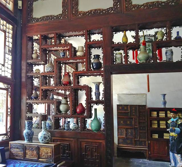 奢华的排场我认为是在曾国藩、李鸿章几个大人物的卧室兼书房中,精美繁复的木雕,别致精典的中式窗饰,还有房中的家具、珠宝架等,靓眼得很呢!