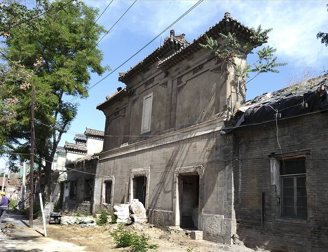 然后步行十几分钟是淮军公所,是李鸿章为纪念淮军在镇压太平天国和捻军阵亡的“将士”而建的昭忠祠,并兼有安徽会馆之功能。河北省文保单位。看之前的游记说这个建筑散落在一片民房群中,可找到地方一看,围起来在修建,呵呵,还不如在居民群中呢,这下全看不到了。不甘心的围着院墙转,看到一个门开了送出个三轮车来,马上又要关门,赶紧上前说了两句好话,让进去一点儿拍个照,正好是北门牌楼,高大的牌楼还比较完整,错落的马头墙有着明显的江淮建筑风格,下面三个大门框上精美的石雕清晰美观。别的就什么都看不到了。谢过看门人往外走,心里别扭而安慰着。