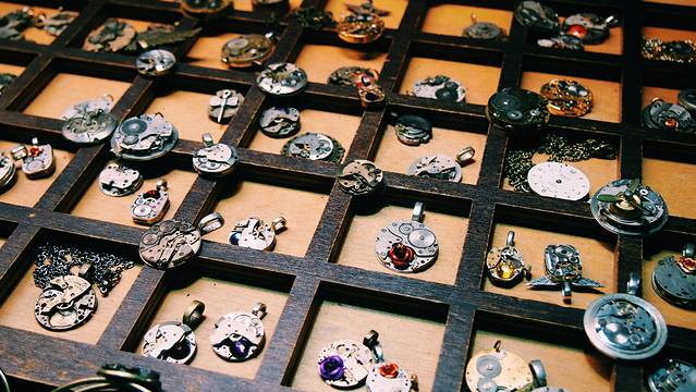 古董手表改造的手饰,店主是一家中国人,这些首饰做工精致具有纪念价值,袖口项链戒指各式各样的饰品都有。