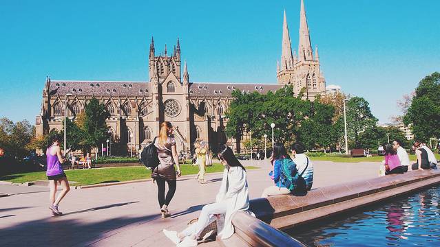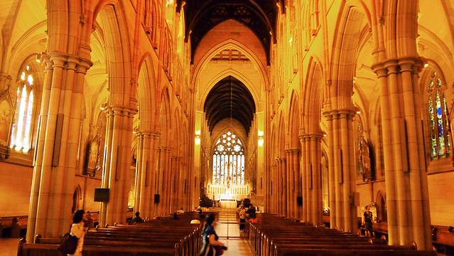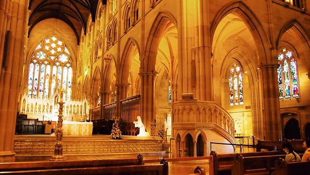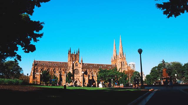 就在海德公园对面马路。免费参观,但是如果是做礼拜的时候,会有保安人员拦着。这座教堂是哥特式建筑,也是澳大利亚规模最大,最古老的教堂,而且没有之一。 大教堂建筑的每一扇窗户的造型都是不一样的,花纹很繁复,而且夜晚亮灯的时候更绚丽夺目的感觉。周一 - 周五 上午8点30分 - 下午5点00分开放。