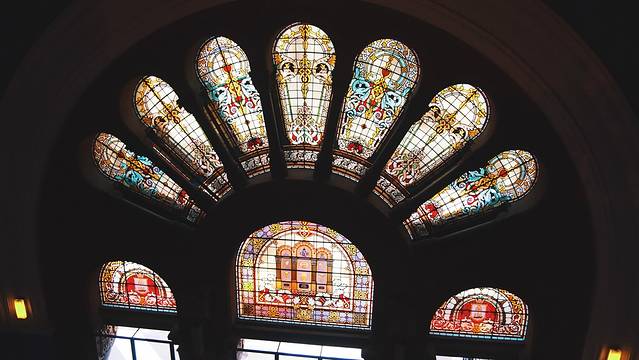 走进教堂里面,一股凉风扑面,迎面而来的是砂岩建造成的纵向立柱和彩色玻璃窗。高大空旷的屋顶,那一刻立马就感概一下哥特式建筑的鬼斧神工!中世纪的建筑遗风,重现了中世纪的繁华和鼎盛,洁白的圣母像,各式各样的烛台,金碧辉煌的圣殿,堂皇的让人膛目结舌。