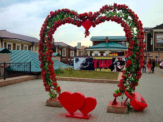 路过的夫妻都会在这里留个影,一会儿的功夫我们就看到三对在这里合影,有的是让自己的孩子照,有的是让同行的朋友照。这里是伊尔库茨克很现代的一片商业区,我们在这里的大型商场、超市购物。