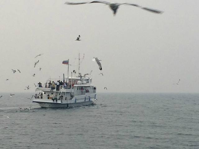 出海喂海鸥,很冷!