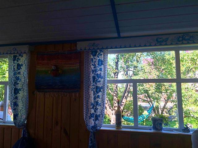 俄罗斯大妈很热情,做的饭也很好吃。餐厅布置也花了心思。最记忆深刻的是提供给客人用的卫生间,很像是坐在土炕边上如厕,很多人不适应,接受不了。花园里种满了花花草草,只是有些缺乏设计,有些乱。总之俄罗斯农家院还是很赞的!