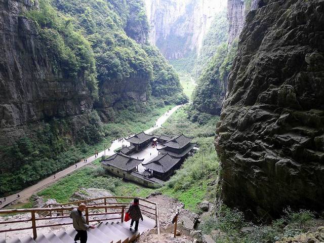 武隆天生三桥风景区内除了天生三桥以外,还有舍身崖、望峰石、绿茵塘、仙女洞等众多景点点缀其间,引人入胜,令人流连忘返。行走于石阶上不禁迷醉于这自然美景之中,群山相叠,曲径通幽,玲珑幽静,感觉宛如踏入了时空隧道,步入了另一人间。