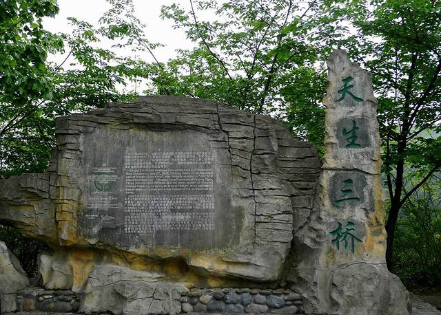 天生三桥由天龙桥、青龙桥、黑龙桥组成,气势磅礴、恢宏,是亚洲最大的天生桥群。天龙桥顶天立地,桥高200米,跨度300米,因位居三桥第一,犹如飞龙在天,故而得名“天龙”。天龙桥下另有天生坑,坑内又生洞,且洞洞相连恍如迷宫,令人倍感神奇。