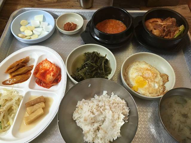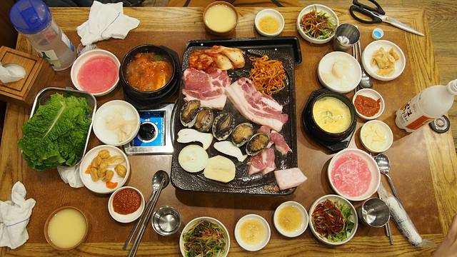 我到民宿的时候还没有开始入住,放下行李寄存,在前台姐姐的帮忙下找到一家韩国小餐馆吃了我在济州的第一顿饭,肉和酱料至今让我回味无穷。