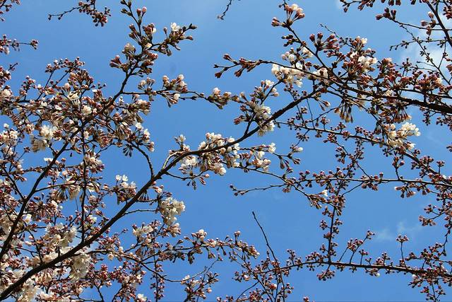 这个春天有点料峭的寒冷,樱花都羞答答的没有开放。很担心走之前能否看到盛开的樱花海。