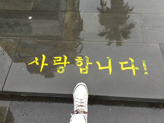写在前面的话,济州的人很友善,自己一个人的自由行,英语刚过四级,不会韩语。五天的行程全靠蹩脚的英语加地图加手势搞定。每一天都会遇到当地的好心人。从釜山来济州度假租车的一家人送我们从城山码头到城山日出峰。雪绿茶博物馆出来后找不到公交站牌的我们,被大叔捡了,送我们到翰林!西归浦潜水艇后帅哥送我们到赛吉亭公园。出租车师傅不厌其烦一遍遍帮我们打中文台沟通订票。