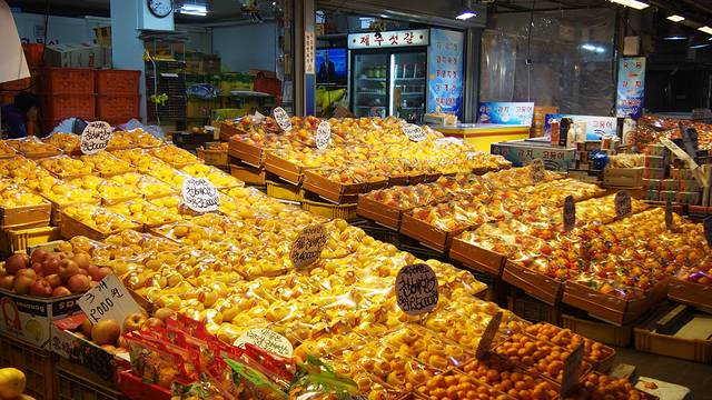 都是济州岛橘子林里产的橘子,一个橘子平均要四五块钱吧,买了两个,肉汁非常丰富,好吃