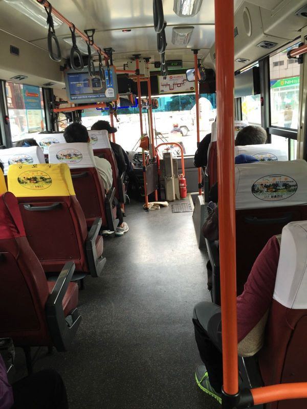济州的公交车,赶去英式小火车的路上,上车时在地图上指明要下车的站点,司机都很nice!到站了都告诉我。