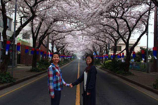 如果你来不及看关西的樱花雨,错过了岛国的浪漫樱花。或者你不喜欢太阳国。那么去一趟济州岛吧。这里的樱花也很美!!!