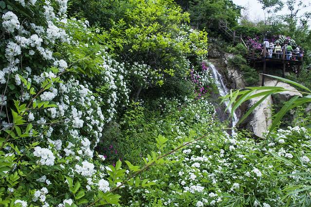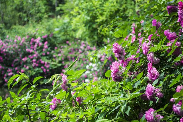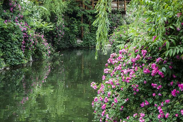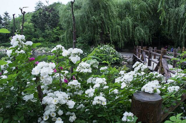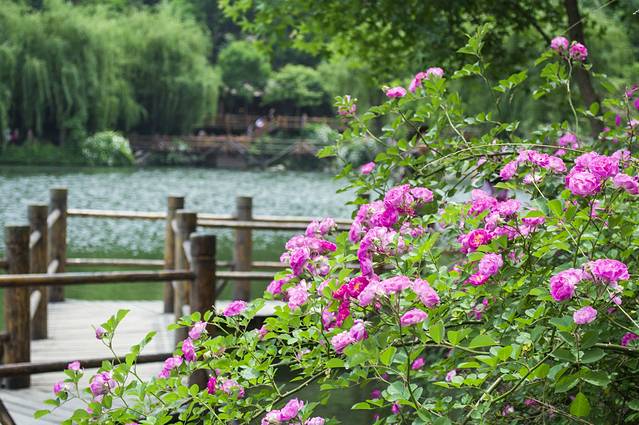 明代顾磷曾经赋诗:“百丈蔷薇枝,缭绕成洞房。密叶翠帷重,浓花红锦帐。”