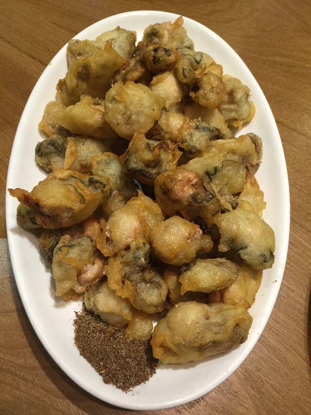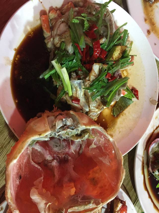 老板推荐了一只帝王蟹,100一斤,加工费因为昨天来过,老板打了一个折80!虽然说海鲜清蒸原汁原味,但是我们口味重的,还是喜欢吃椒盐的呢