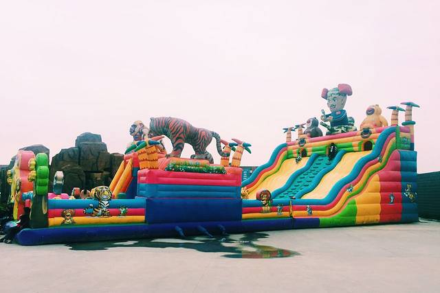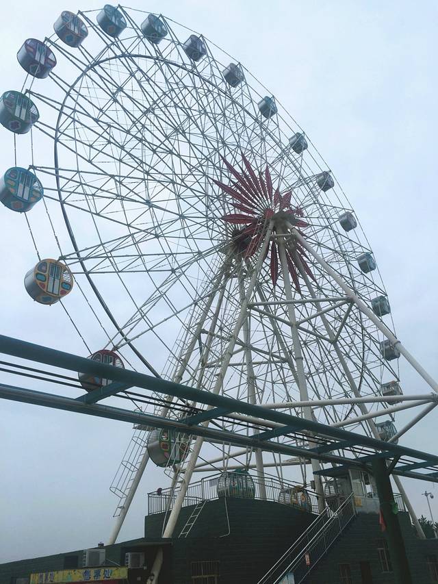 吃完抹抹嘴,大概1点钟,我们又开车去了生态龙虾城,行程20分钟左右。龙下城里看到很多外地来旅游的车,都停在路边,好热闹的样子。因为刚吃过饭,我们就直奔龙虾城游乐园了。龙虾城听说是准备建成一个大型的商业街,目前除了街边的虾店,其他的店铺都在装修中。走了大概20分钟左右,到了游乐园。我们先围绕游乐园观察了一圈,看到里面有摩天轮、飞天锤、过山车、碰碰车等等。一到飞天锤那里,就听见一个男生坐在飞天锤上各种惨叫。我和男票感觉看着很不错,就也买票去玩。20块钱一个人。坐上去系安全带的时候还觉得没啥,一按开始,整个人都不好了。地上的门朝下打开,甩得我们上天入地、天旋地转,游戏的5分钟却成了漫长了煎熬。