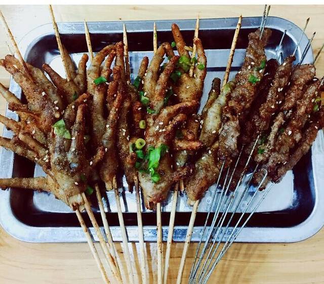 朋友开车过来接的,直奔北门凤爪烧烤总店撸串。点了招牌烤凤爪,羊肉串,各种烧烤,肉丝炒面,蛋酒汤圆。凤爪应该是先卤过的,煮的很烂,很入味,味道很赞。吃的饱饱的,晚上夜宿朋友家。