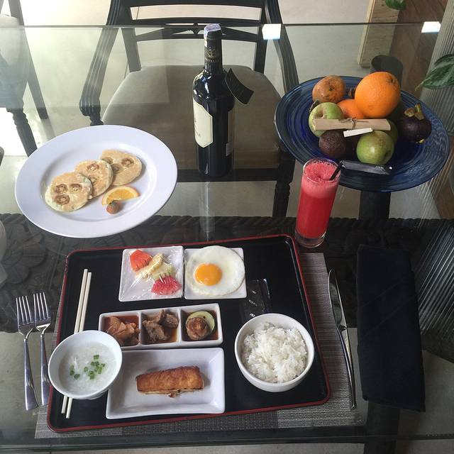 管家准备了鸡尾酒,不怎么好喝但是挺美的,可以用来装装逼哈哈哈,问了我们第二天要吃的早饭,有很多很多可以选择,我第一天吃的是印尼粥。。比较清淡
