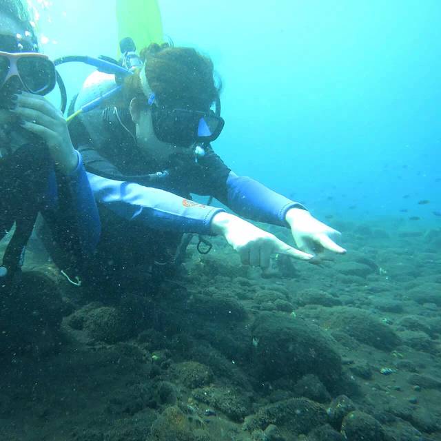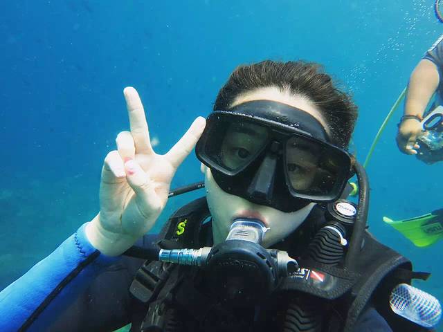 经过三个小时的车程我们终于到了潜水圣地!图兰奔!当时一进去感觉自己被拐进了窑子……里面全是黝黑的男人望着我们三笑,事情证明我想多了,教练十分友好可爱,很好交流,基本肢体语言就行,接下来换好了衣服,在海边!教练教了我们大概十分钟的基本知识,就下海了!真是吓死宝宝了,不过还好我们都适应挺快的,第一次潜了大概20分钟左右,提醒!千万不要用鼻子呼吸,只能用嘴!