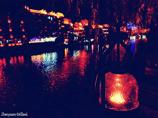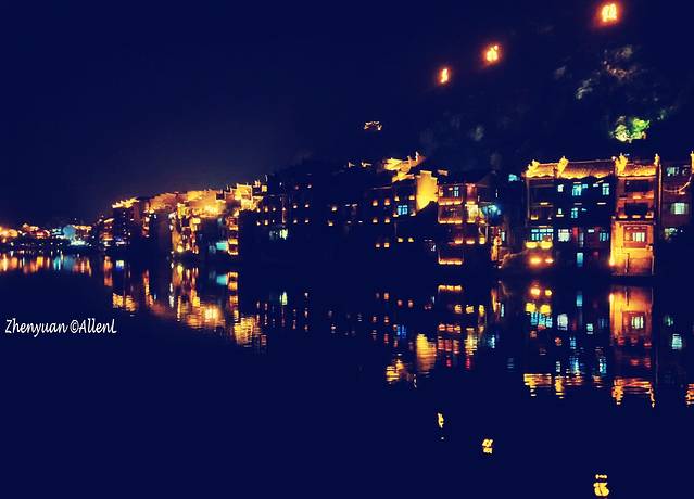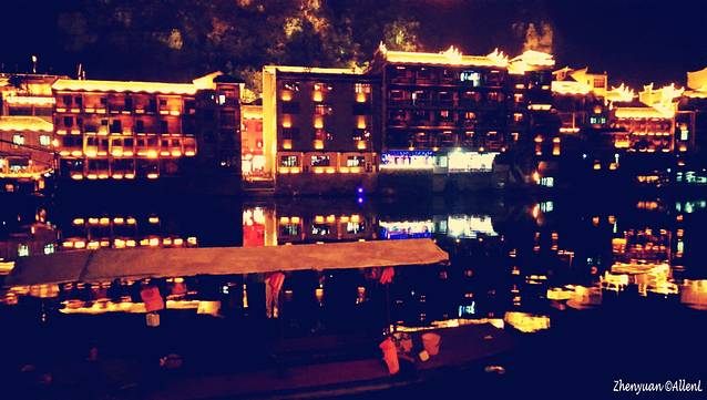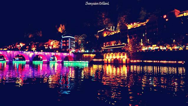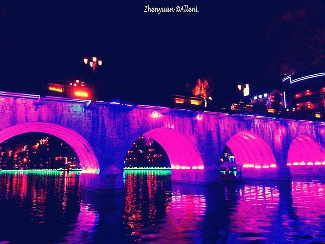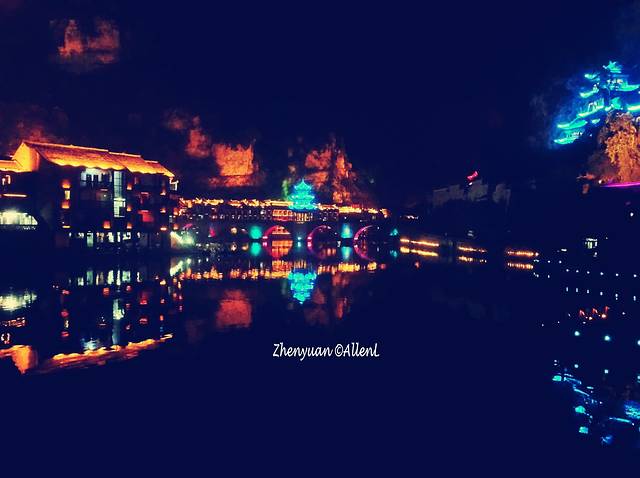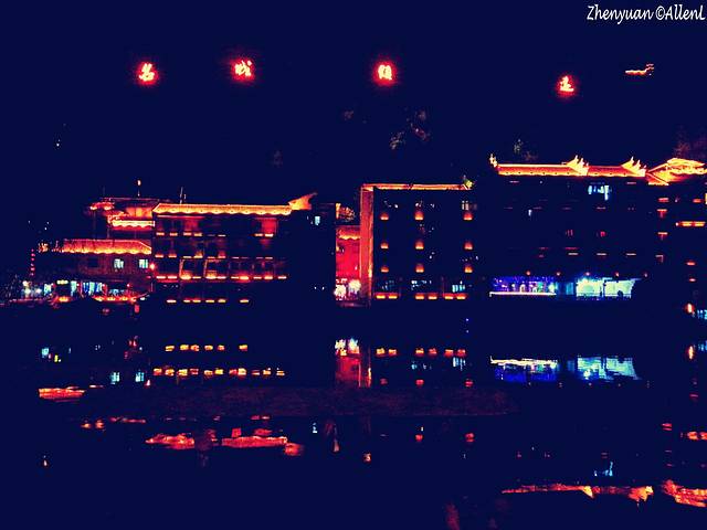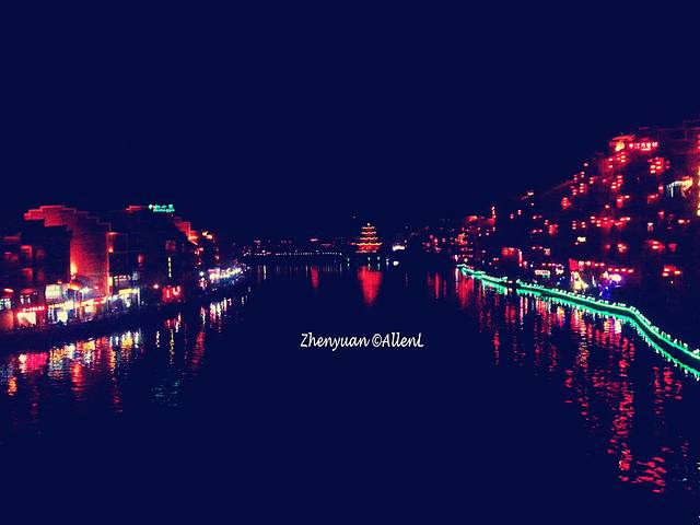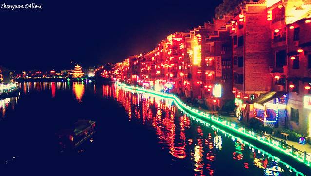 母亲河舞阳河从古镇穿流而过,两岸已是灯红酒绿,绚丽的色彩连接成一片。