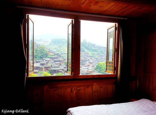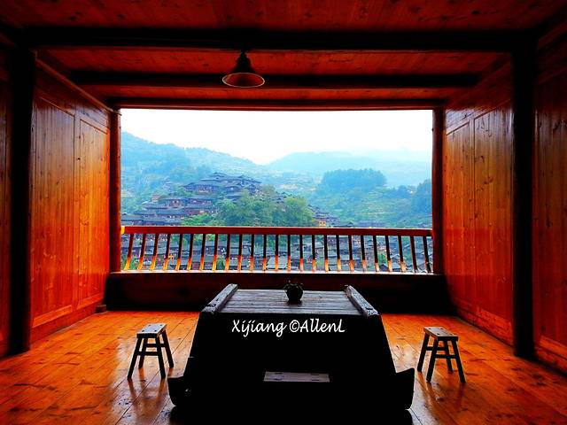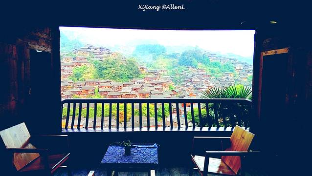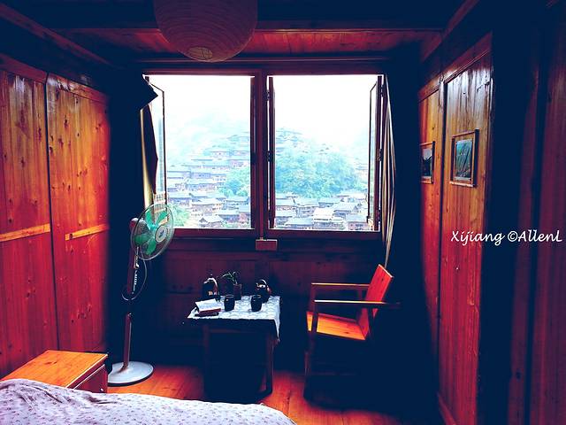 苗寨的景色,简直就是房间的自然屏风。