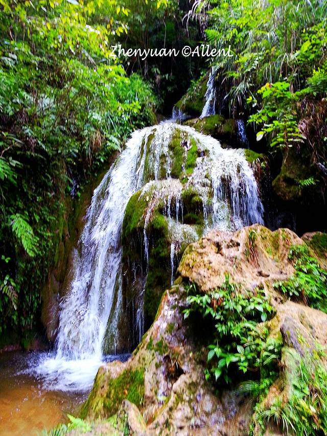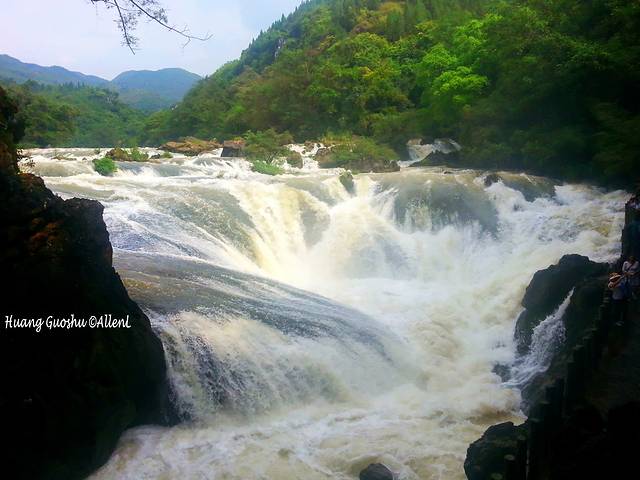 首先会看到“孔雀开屏”,一个略微分散的瀑布。这是舞阳河的标志。