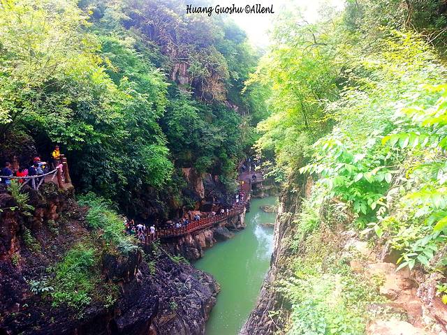 从石桥上纵览纵谷深处。国庆时的人还是挺多的。