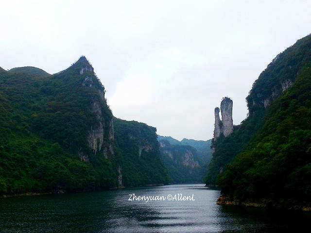 各种奇峰怪石矗立在两岸,比如这道石门形状的小山,挺称奇的。