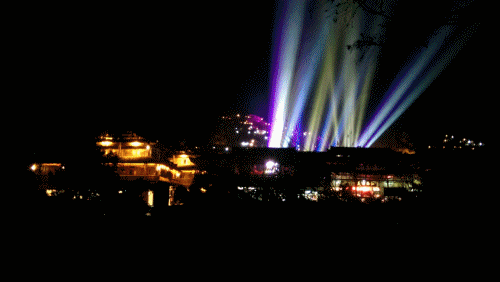 投射出的灯光在夜色中格外绚丽,做个GIF图片试试。