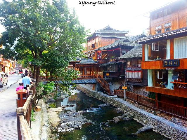 尽管也已经有些商业化,但西江苗寨相比大名鼎鼎的丽江、凤凰等古城,还是少了几分喧闹,恬静中也散发着纯粹的民族风情和朴实的生活气息。河边已经形成了小型商业街。