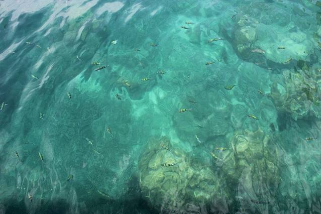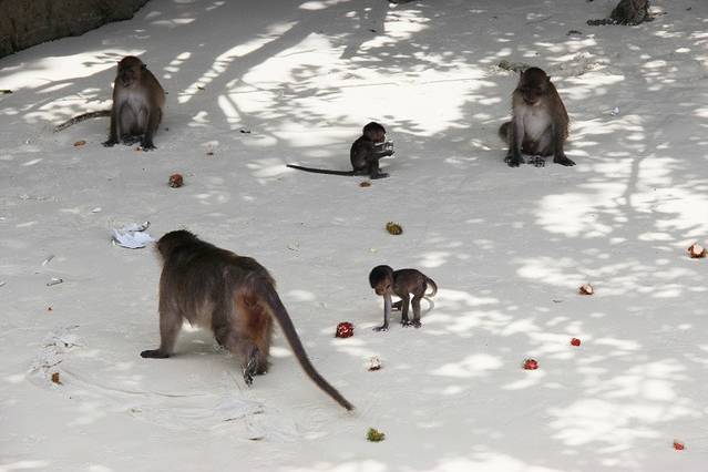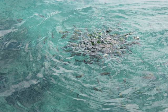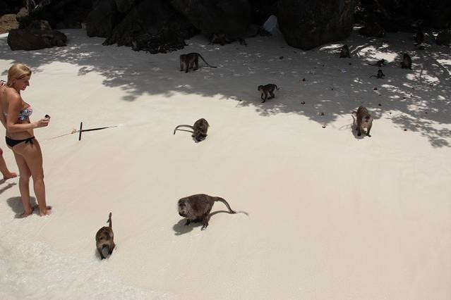 我们在船上扔水果下去,他们站起来要,哈哈!