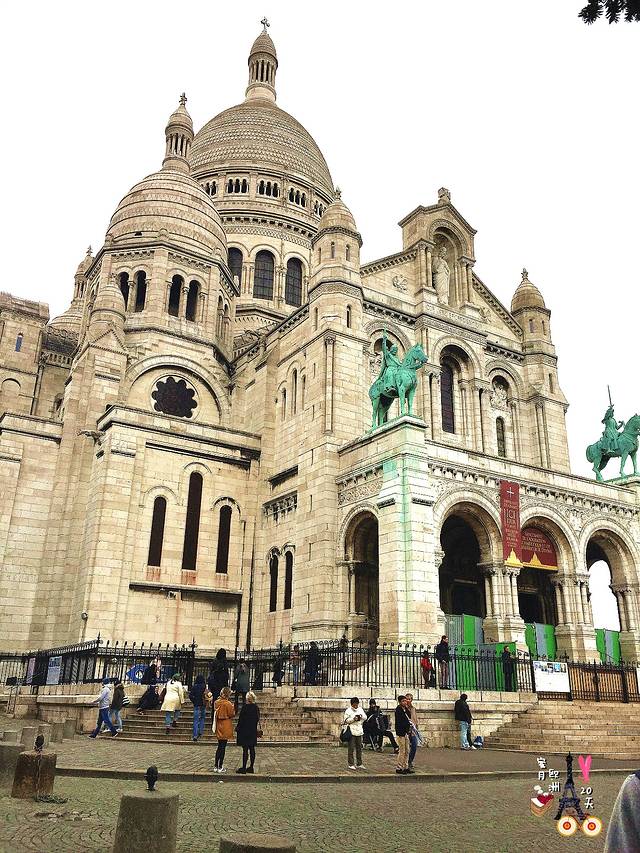 稍作休息我们就来到了离我们不远的圣心堂,这里是巴黎的最高点,也是可以俯瞰全城的好地方。圣心堂位于蒙马特高地,在地铁出口的地方还有新地标“巴黎爱墙”,因为之前以为爱墙只是路边的一面墙,就想回去的路上顺便拍个照,没想到竟然还有关门时间,于是我们就顺利的错过了,只能远远的看看。