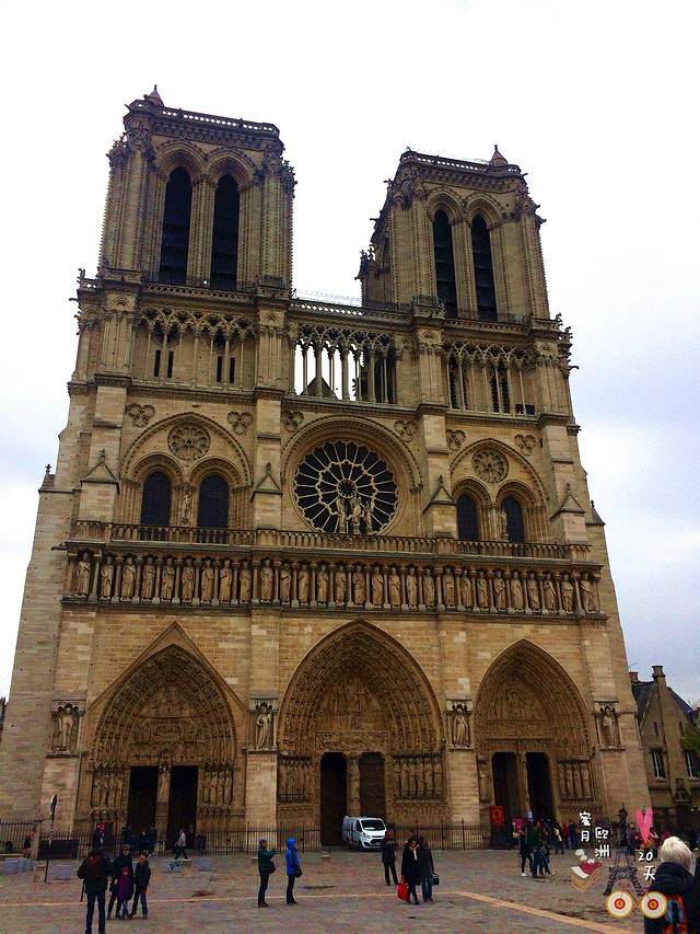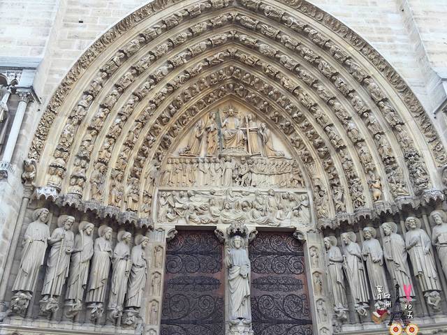 扯远了,回到旅途中,第一站巴黎圣母院。圣母院位于西岱岛上,地铁可到达。这座曾经一度荒废的哥特式教堂,因为雨果的《巴黎圣母院》重获新生。pass卡可以在教堂外右侧免费登钟楼(不知道有没有钟楼怪人~~)不过排队太久,我们又没有很大的兴趣,就没登顶。