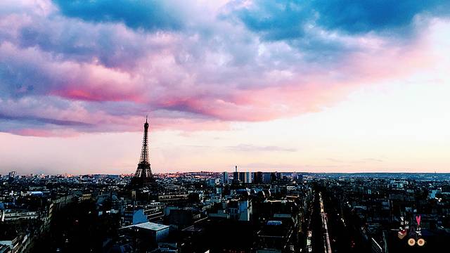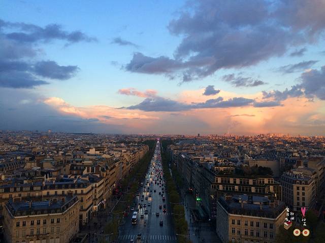 阴晴不定的巴黎竟然在登上凯旋门的一刻给我们带了一抹精致的晚霞,墨兰、绛紫、玫瑰粉层层叠叠,让一身的寒气终于有了点暖意。可就在此时,竟然飘起了雪花……