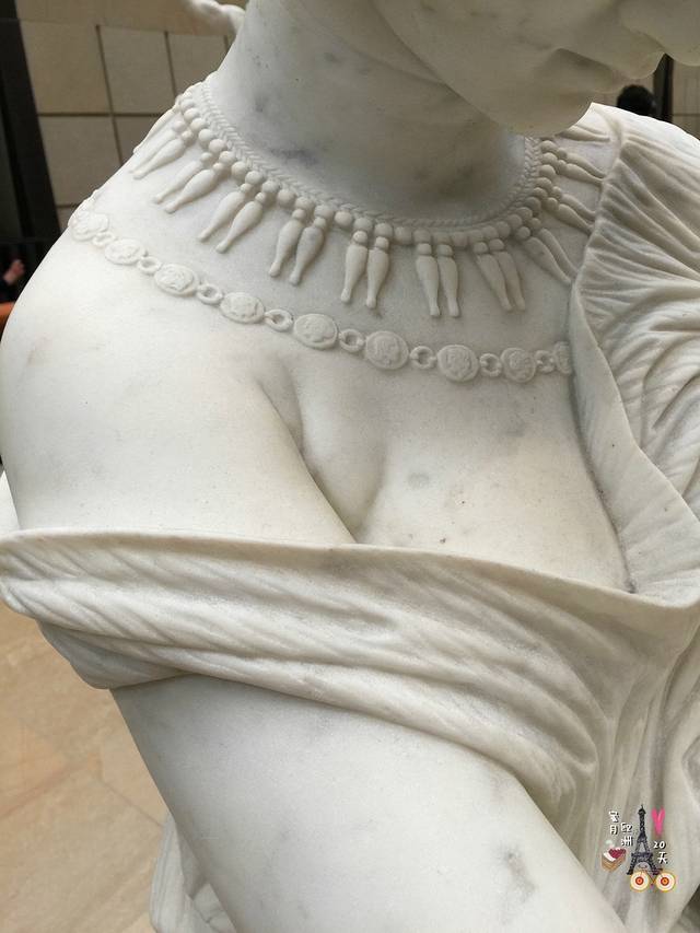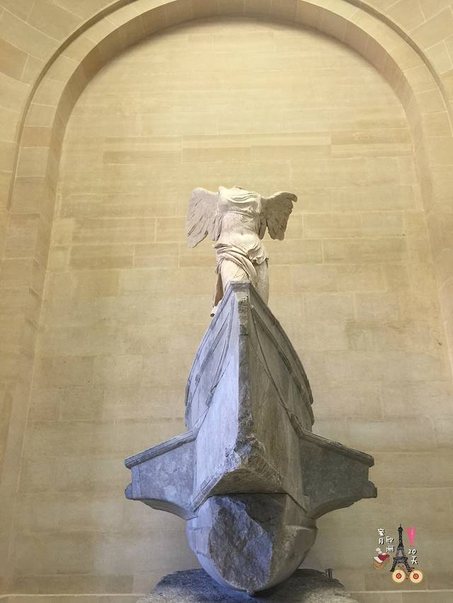 这可是古希腊时期留存下来稀世珍宝,据说是公元前200年的作品,经历了战争灾难,碎掉又被重新修复才得以重新站立起来。她的双翅中只有左边的保存下来,右翅是左翅的石膏复制。