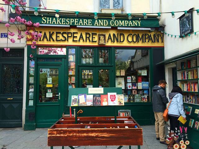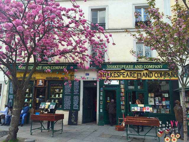 圣母院的河对岸不远处就是文艺气息浓郁的“莎士比亚书店”,一开始还担心书店太小不好找,随后被一簇簇盛放的桃花指引而来。