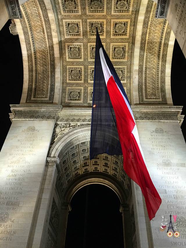 凯旋门悬挂着法国国旗。