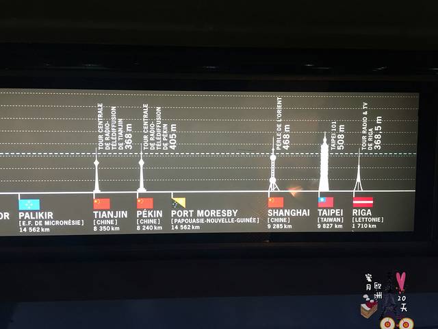 塔顶一周的墙壁上有世界各国著名高塔高度的对比展示图。
