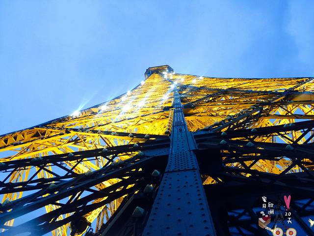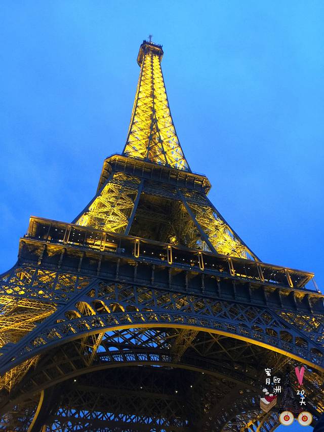 每天夜色降临到凌晨两点的每个整点,铁塔都会闪灯5分钟,远远望去异常美丽,我们四天三夜的巴黎之行幸运的在不同地点观看了三次铁塔闪光,第一次是此刻在铁塔上,第二次是隔天在凯旋门顶上,第三次是在夜晚塞纳河的游船上。