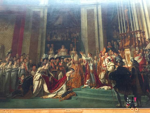 雅克-路易•大卫创作的《拿破仑加冕礼》,这是一副政治宣传作品,很多地方都被美化了。本来没有参加的皇帝母亲出现在了画面中显眼的位置,拿破仑也变得更高更瘦,跪在他面前的约瑟芬皇后年轻了许多。