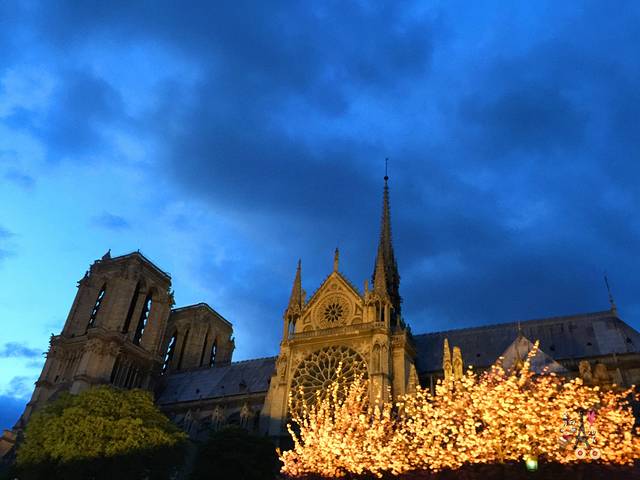 夜晚的景色与白天迥异,古老的教堂有点吓人。路过巴黎圣母院,却被路边的野花吸引,在灯光下火树银花甚是美丽。