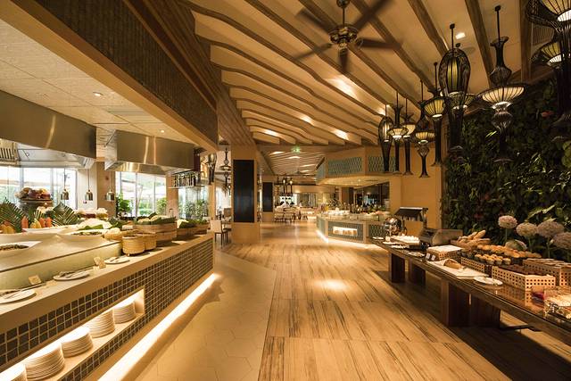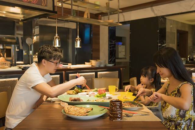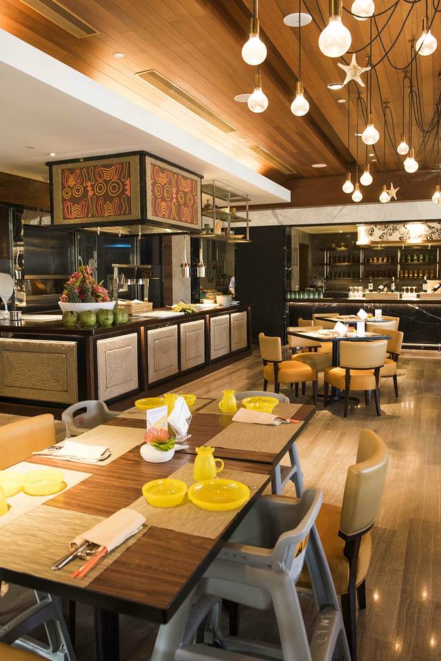 整个餐厅由六个开放式厨房和两个自助餐台组成。不得不提的是,这里有小朋友不可错过的 儿童自助餐台。60厘米的高度,正好满足孩子取餐需要。
