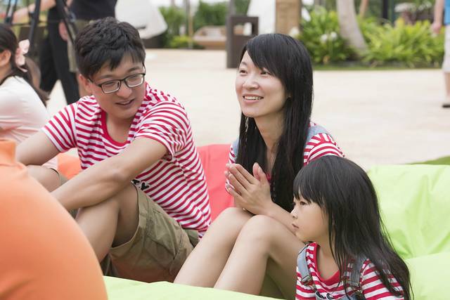 一排排的懒人沙发上,坐着的都是观看表演的爸爸妈妈和孩子们。