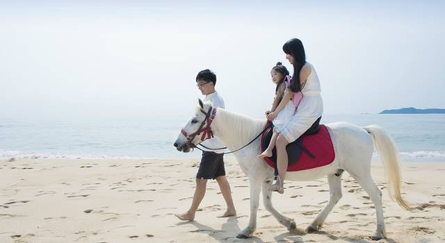 酒店有多项亲子体验活动不可错过。在海滩骑马,一边呼吸清凉的海风,一边看浪花调皮的跳跃。体验如此美景不用总想着巴厘岛,更不用想着远在天边的毛里求斯。近在眼前的三亚香格里拉酒店私人沙滩就可以做到!马很温顺,连第一次骑马的夏夏都直呼过瘾,骑着小马看大海喽!