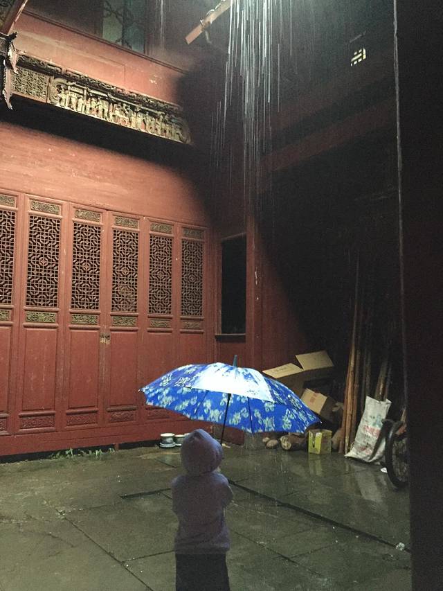 晚上应约来高老爷家的老宅院,看 这是天井飘下来的雨水