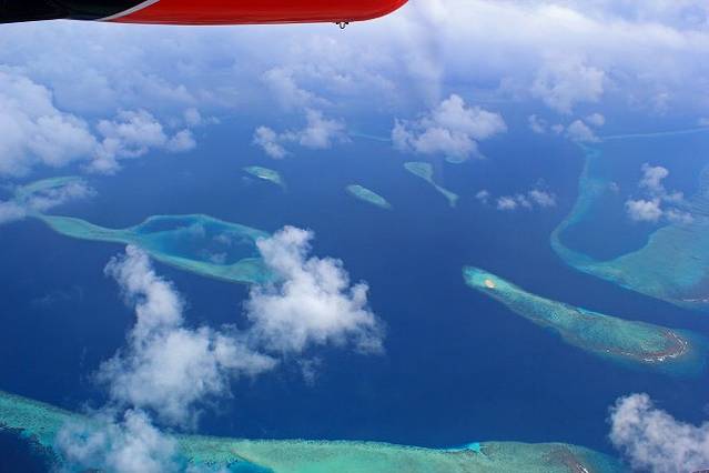 1.出发前看了好多游记都说去马代一定要感受下水飞,亲身体验后觉得这是一个误区。 水飞仅仅是一种交通方式而已,不要对它有过多的期待。在水飞上可以看到下面像珍珠一样散落的小岛(如果你靠窗的话),但是你一样也可以在内飞的起降阶段看到,甚至觉得在国际航班上看到的更美(PS:楼主从新加坡到马累的航班,尤其快到马累时,窗外看到的景色绝对要比水飞上还美~)。还有一点,水飞座位小,走进机舱还要弯着腰,否则就会碰头,而且舱内的闷热和噪音,实在不是一般水准啊,而且在恶劣天气条件下,最先取消运营的百分百是水飞。 靠窗坐,不论靠前还是靠后,航拍时都有螺旋桨遮挡,偶尔看到几个岛也分不清是哪个~所以完全没必要一定要选水飞。