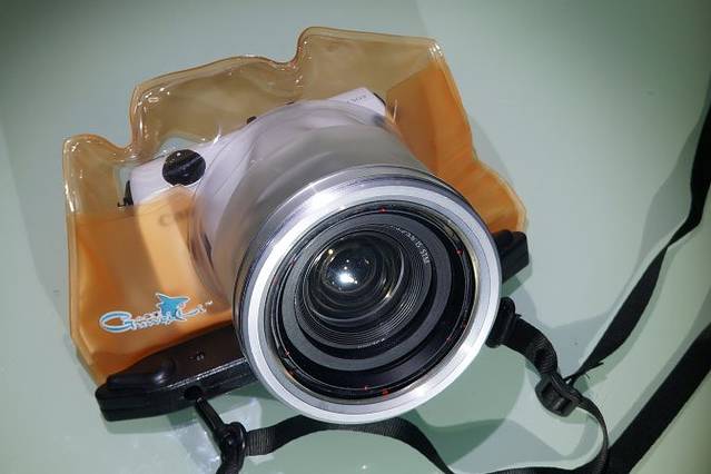 6.水下拍摄设备,首先防水相机可以购买可以淘宝上租用,看个人喜好。如果想拍的专业漂亮,可以网上购买相机防水套,具体型号看个人自己的相机,单反和卡片微单都有,我选了好久锁定了淘宝一家做微单防水套比较专业区别于其他只有防水功能的卖家,拍照清晰度很满意